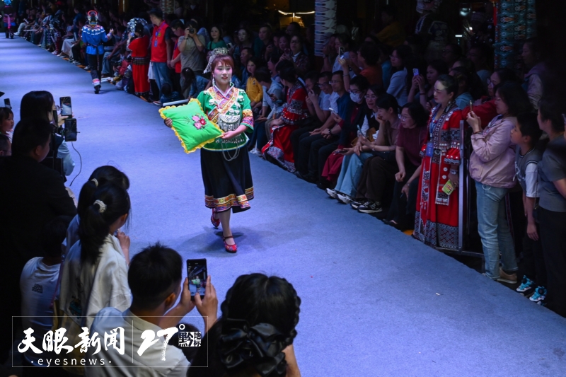 不同于常規(guī)的服裝秀,貴州“村T”的模特大多數(shù)都是當(dāng)?shù)卮迕,臺步可謂毫無專業(yè)性,但恰是這種質(zhì)樸的純粹和生活狀態(tài)的本真還原,使得老人可以扛著日常的農(nóng)具上臺,大娘們穿著生活盛裝展示一針一線里流淌的隆重,小孩邁著稚嫩的步伐童趣十足……具有民族韻味的元素在此匯聚,塑造了民族審美的生活美學(xué),參與者和參觀者均絡(luò)繹不絕。
