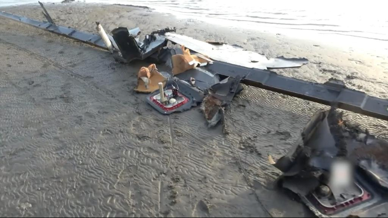 這張2月20日的視頻截圖顯示,疑似被胡塞武裝擊落的美國(guó)MQ-9無(wú)人機(jī)殘骸墜落到也門(mén)紅海城市荷臺(tái)達(dá)的一處海灘上。新華社發(fā)