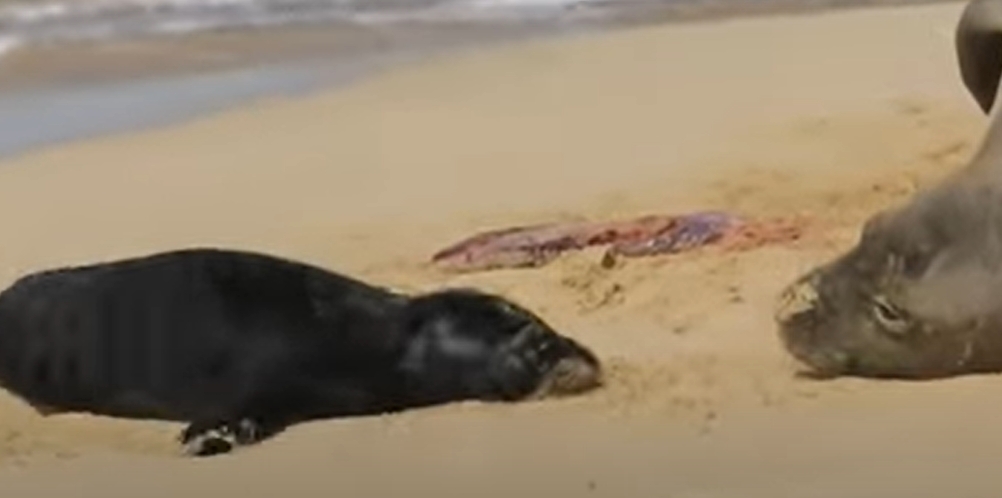 剛出生的夏威夷僧海豹幼崽(美國全國廣播公司視頻截圖)