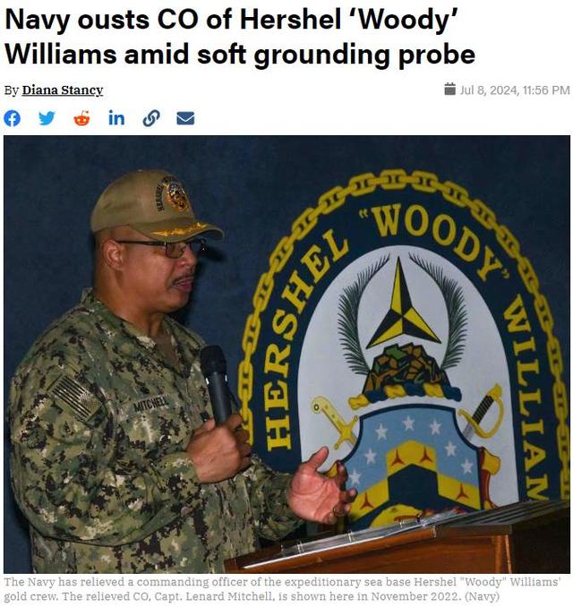 當(dāng)?shù)貢r間7月8日,美國海軍發(fā)布新聞稿稱,對艦長倫納德·米切爾(Lenard C. Mitchell)的解職決定是基于對“赫謝爾·伍迪·威廉姆斯”號今年發(fā)生的擱淺事故的調(diào)查,“雖然調(diào)查仍在進(jìn)行中,但在調(diào)查過程中發(fā)現(xiàn)事實,足以證明解除指揮官的職務(wù)是合理的。”
