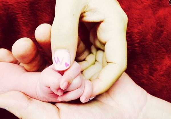 章子怡在美國(guó)順利誕下女兒,曬出一家三口大手牽小手的照片(資料圖)